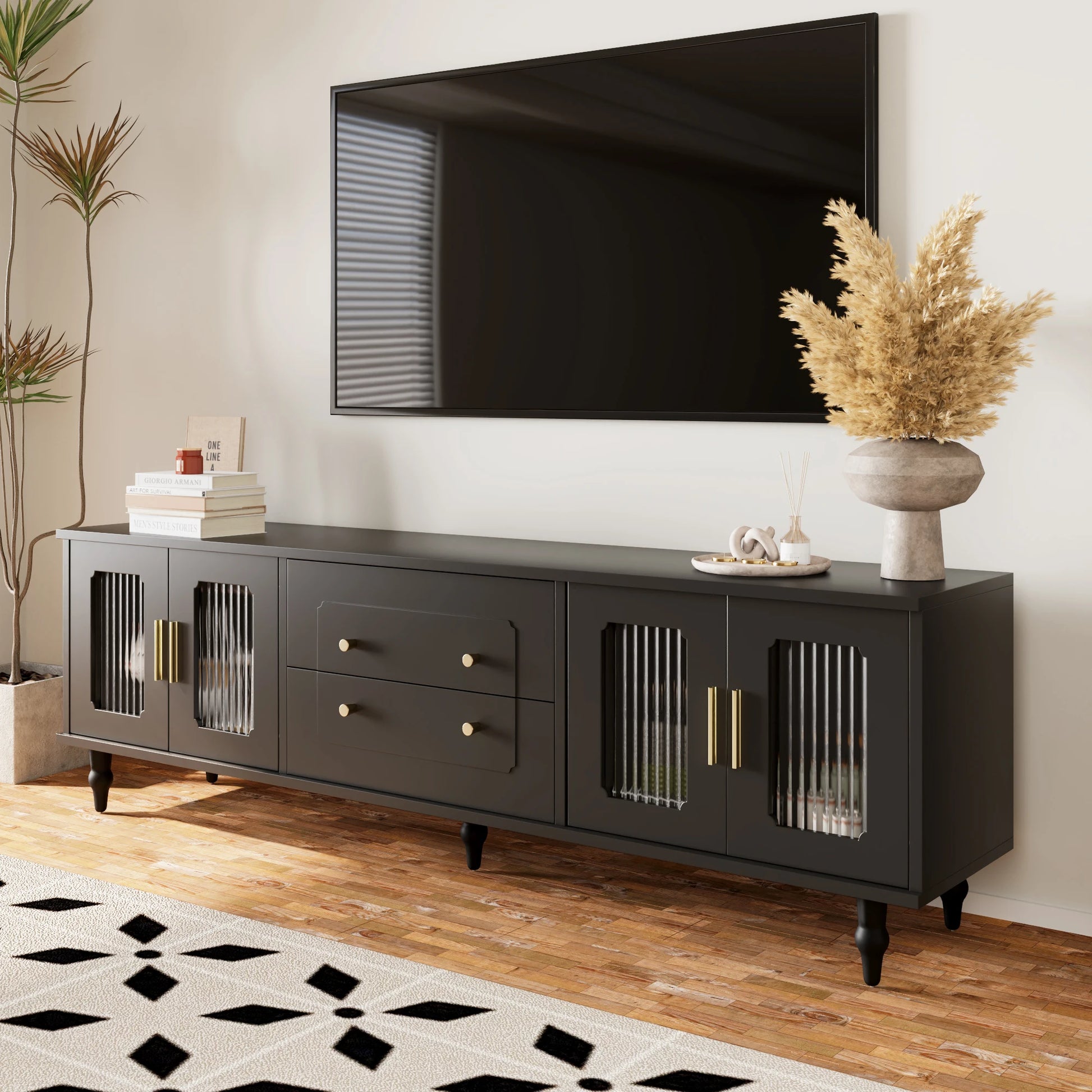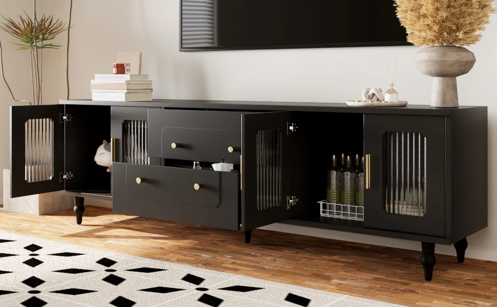 2. Ribbed glass doors: Four ribbed tempered glass doors create a mesmerizing play of light and shadow, adding an elegant touch to the furniture.